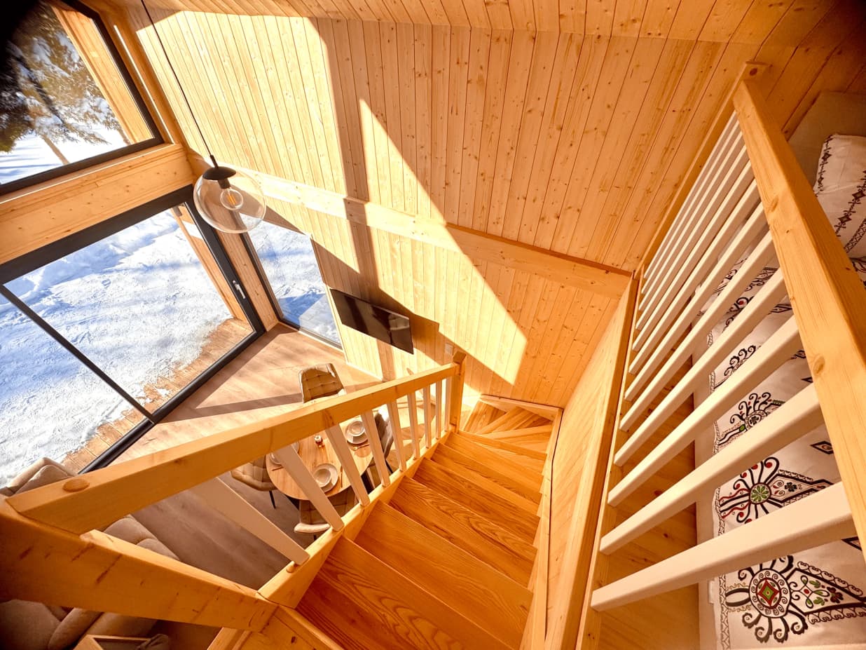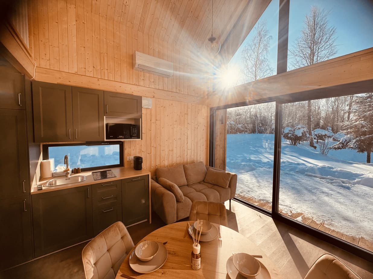 Cała przestrzeń Jabramówki zaprojektowana jest z myślą o waszym relaksie i zasłużonym odpoczynku. Duże przeszklenia, naturalne materiały i panoramiczny widok na zieleń i wodę to dopiero początek Waszej przygody.