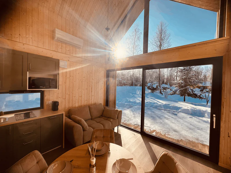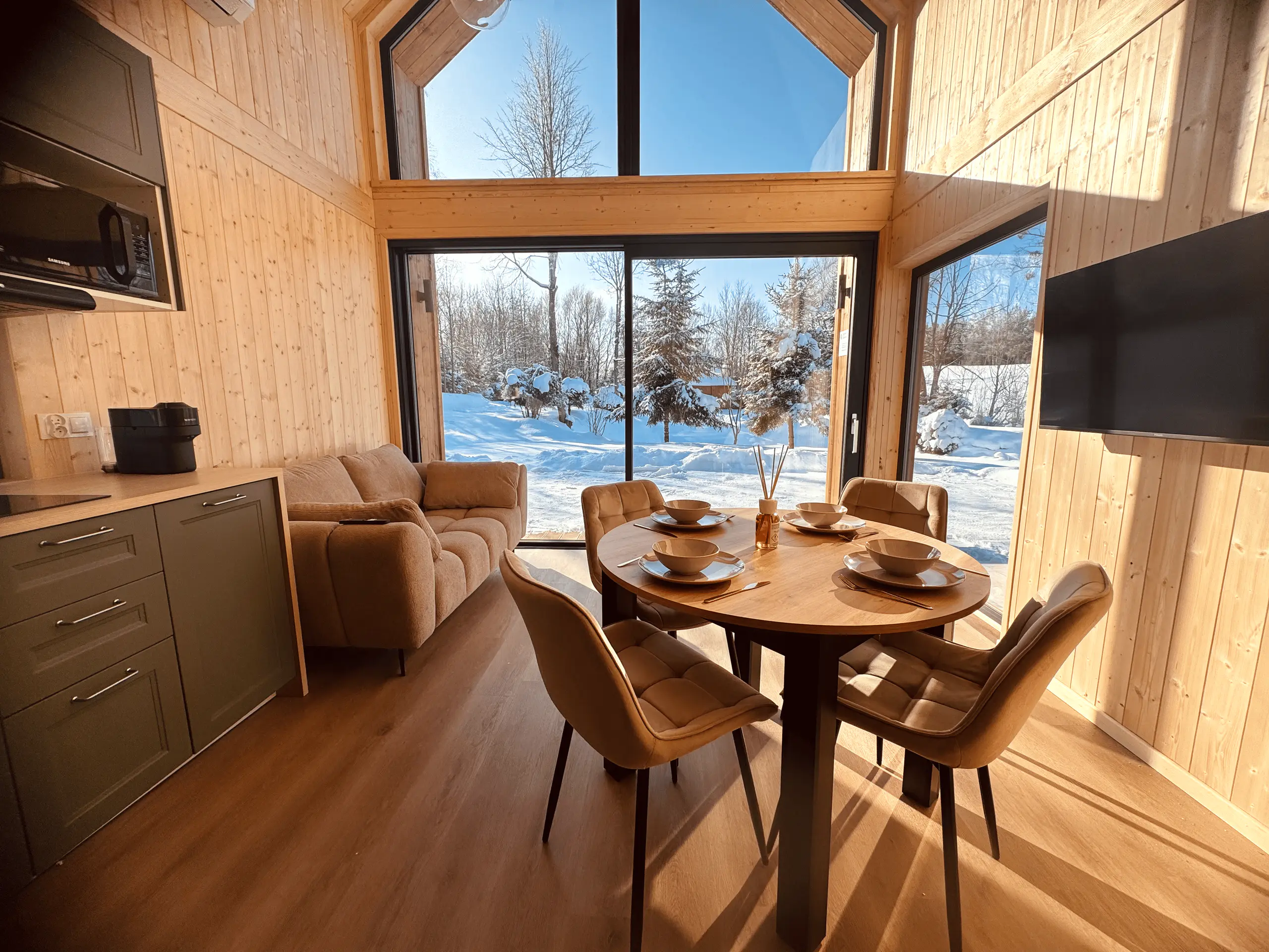 Cała przestrzeń Jabramówki zaprojektowana jest z myślą o waszym relaksie i zasłużonym odpoczynku. Duże przeszklenia, naturalne materiały i panoramiczny widok na zieleń i wodę to dopiero początek Waszej przygody.